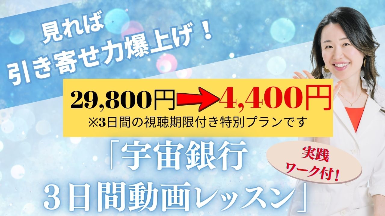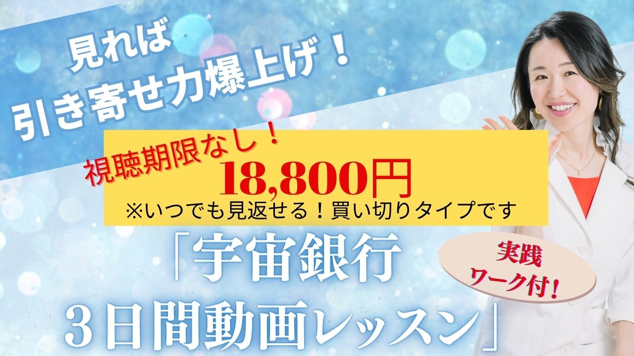 【視聴期間限定・特別販売中】「引き寄せ力爆上げ!宇宙銀行3日間動画レッスン」➕実践ワーク付き【29,800円⇨4,400円】